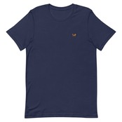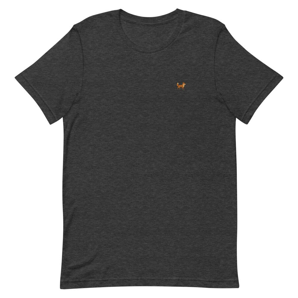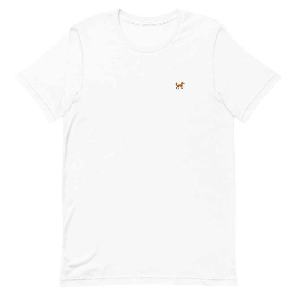 胸元に刺繍風のワンポイントであしらったキツネの佇まいが印象的なTシャツ。