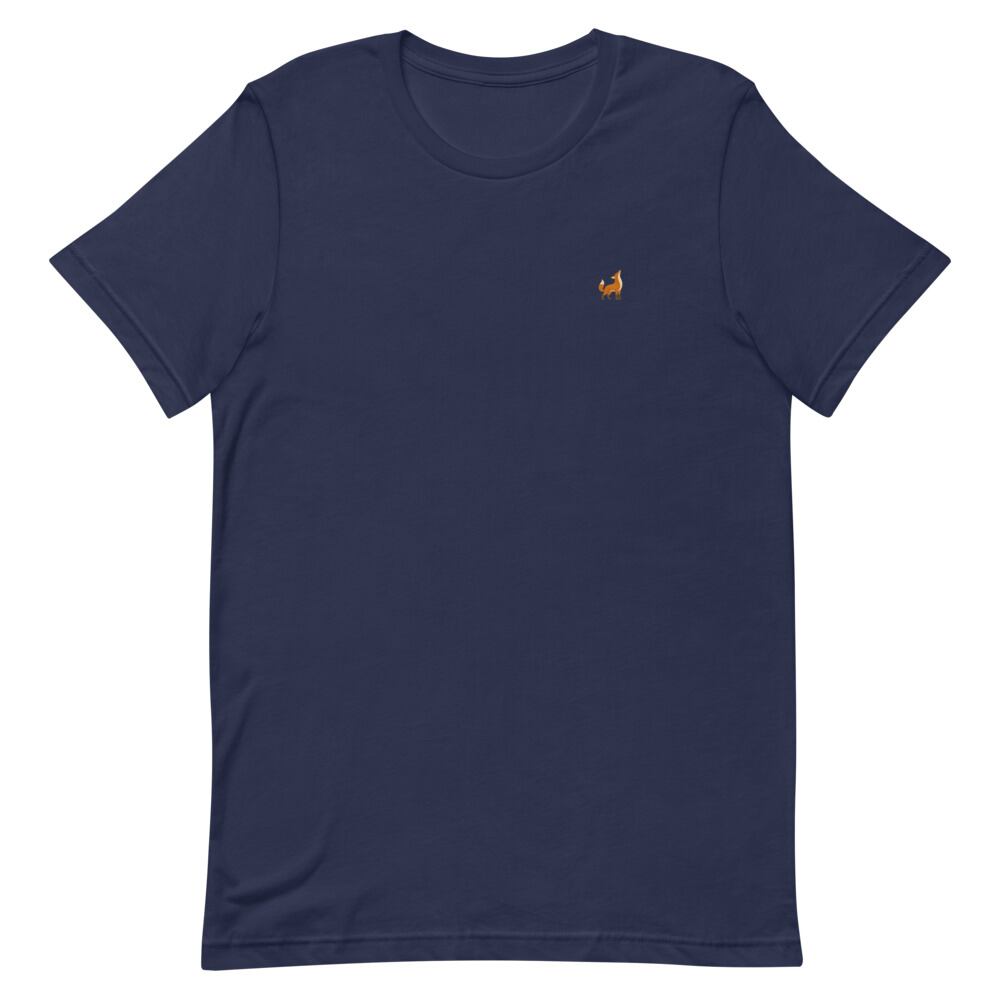 胸元に刺繍風のワンポイントであしらった、遠吠えするキツネの佇まいが印象的なTシャツ。