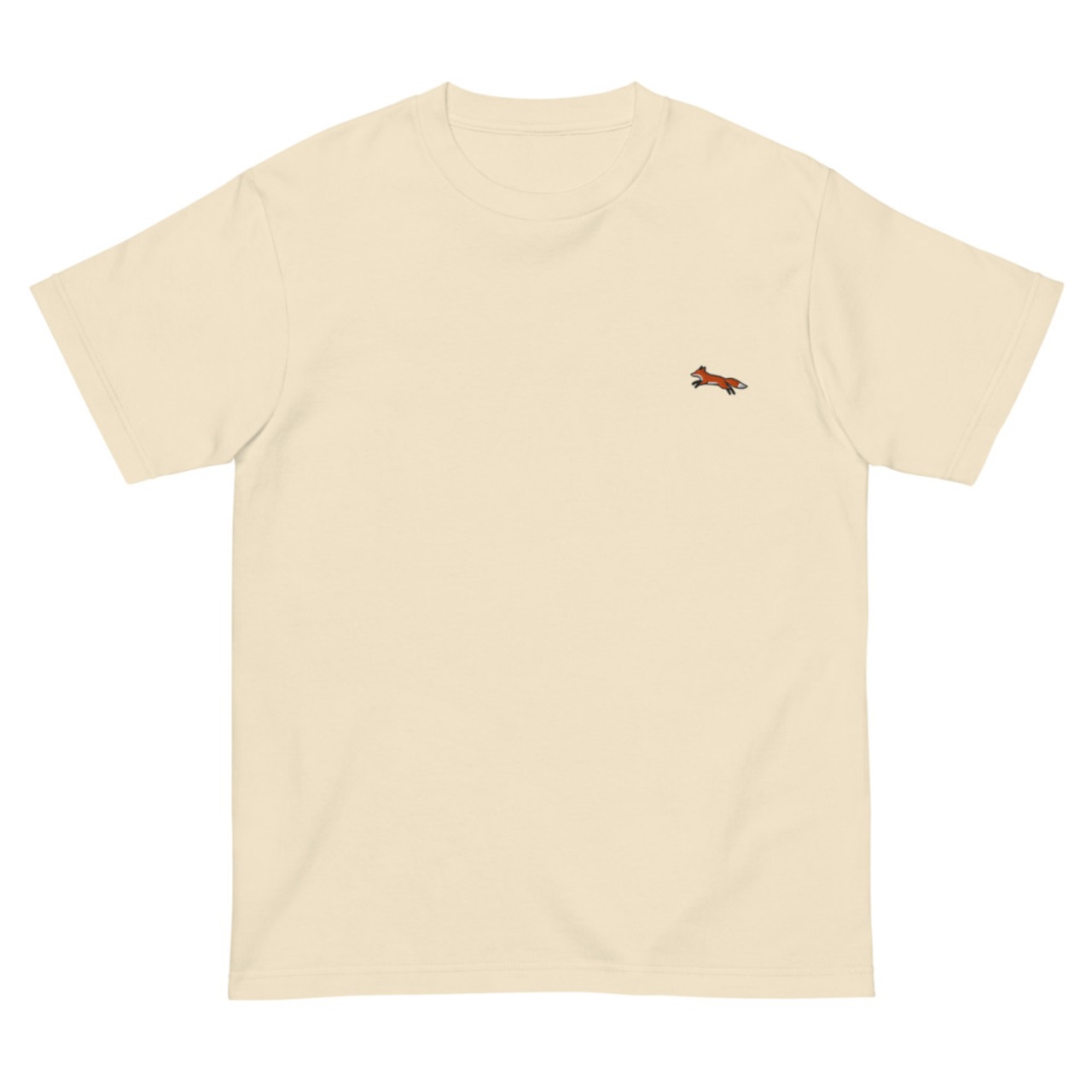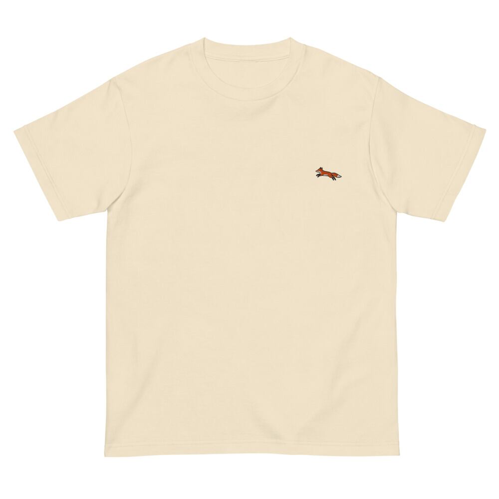 胸元に小さなキツネの刺繍をあしらったシンプルなTシャツです。