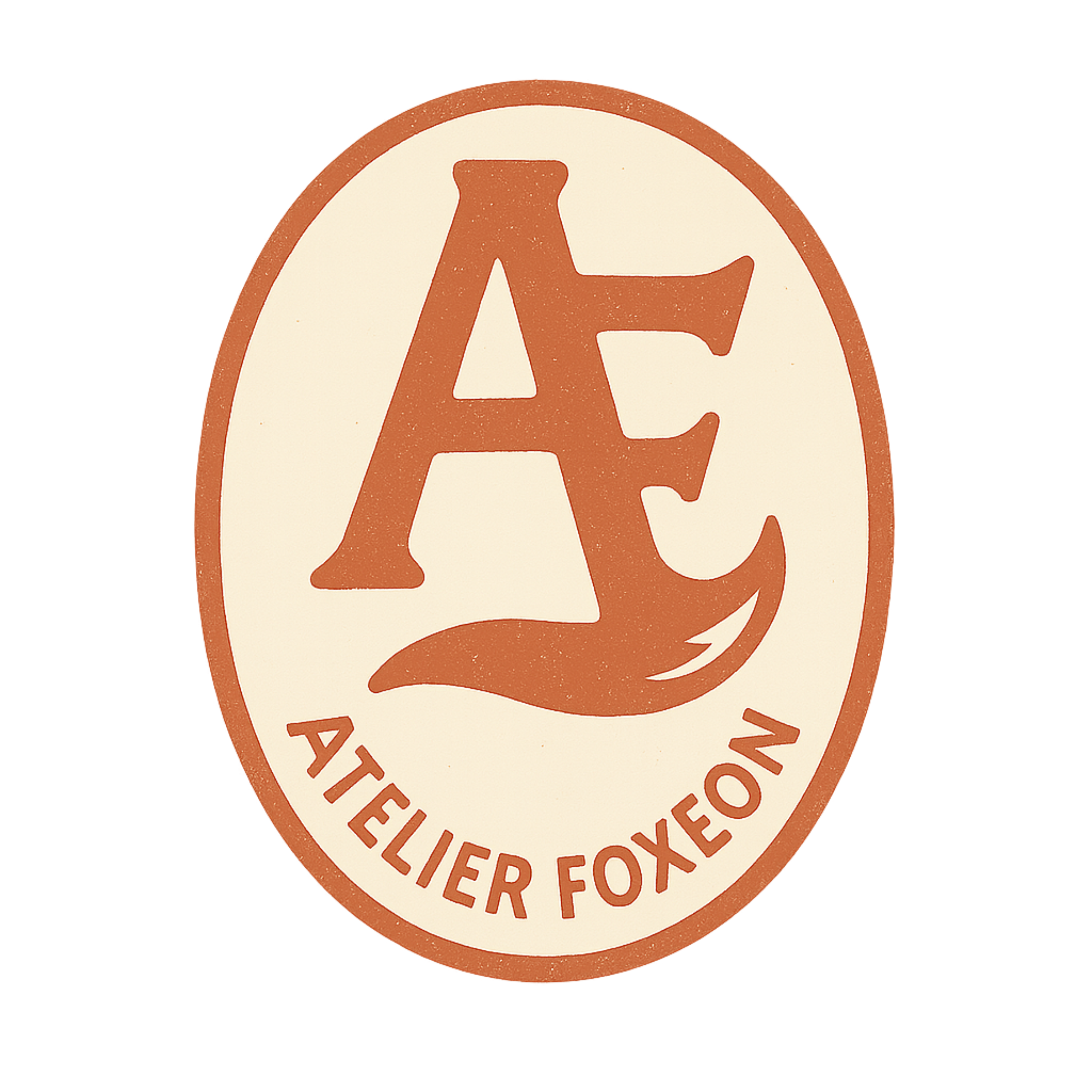 表にはAtelierFoxeonの頭文字「AF」を象った重厚なエンブレム、裏には野を駆け抜けるキツネのシルエット。