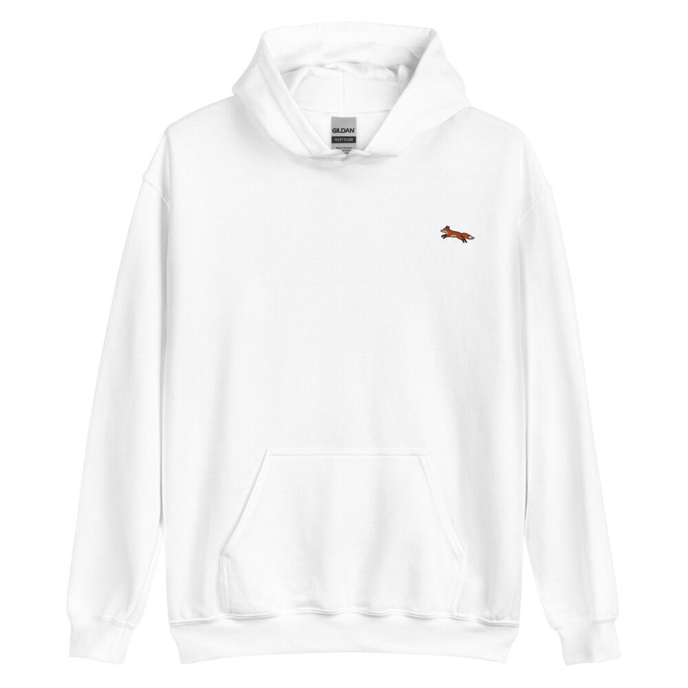 胸元に小さなキツネの刺繍をあしらったシンプルなフード付きパーカーです。