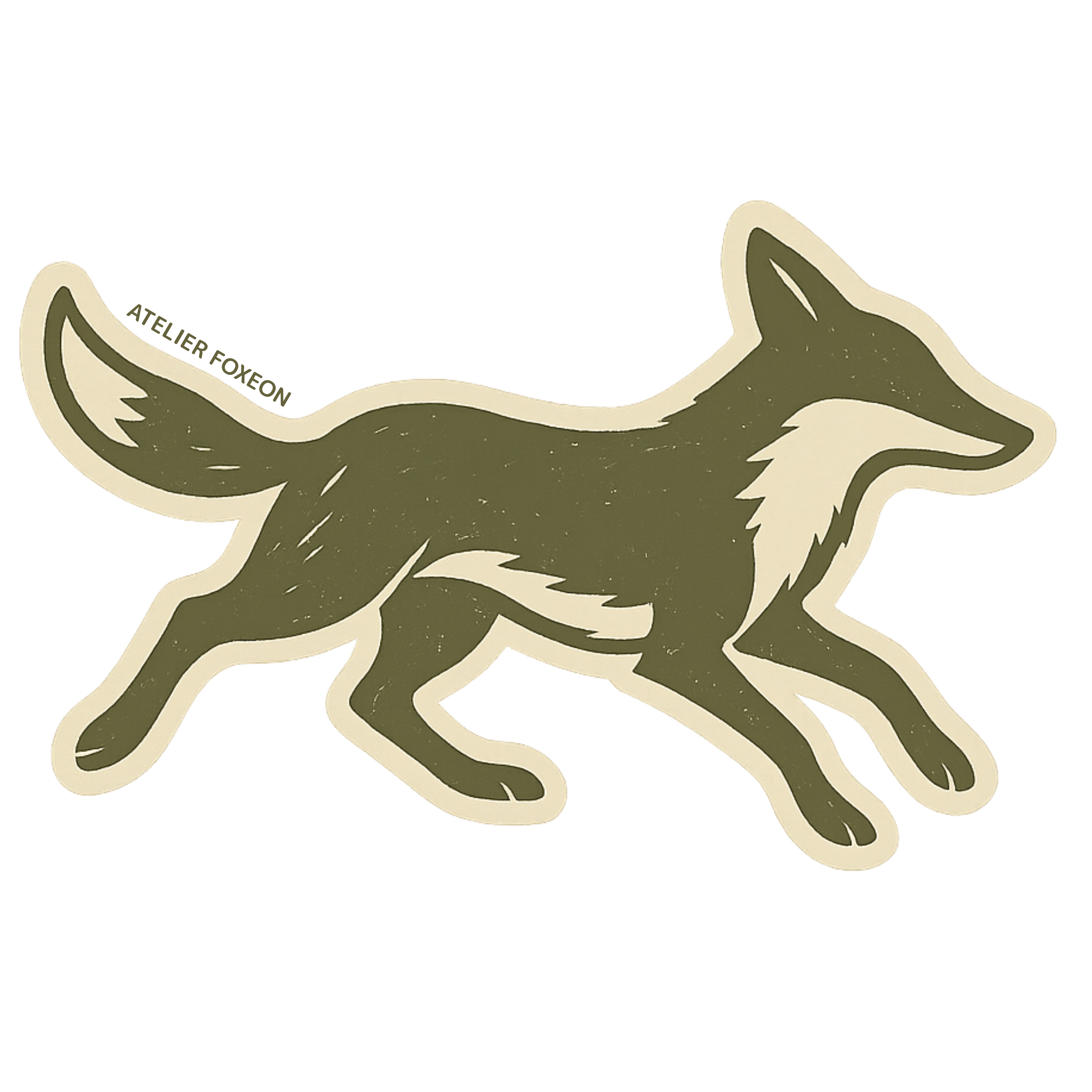 表にはブランドの頭文字「AF」を象った重厚なエンブレム、背面には野を駆け抜けるキツネのシルエット。